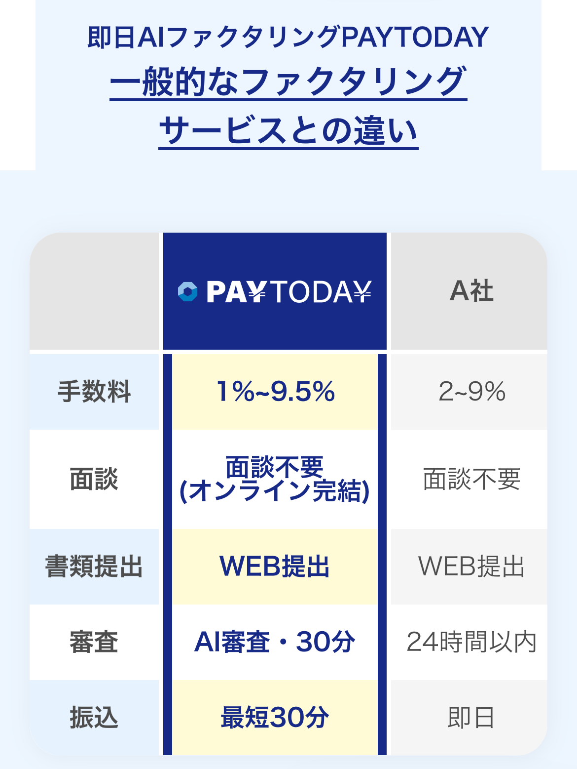 | 商品名 | 即日AIファクタリングPAYTODAY |