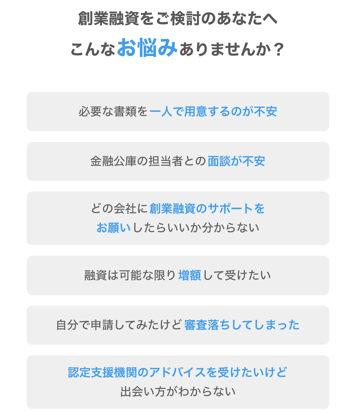 しかし、創業融資のプロに依頼すれば、その悩みは一気に解決! 最短・最適ルートで融資獲得まで導いてくれます。
