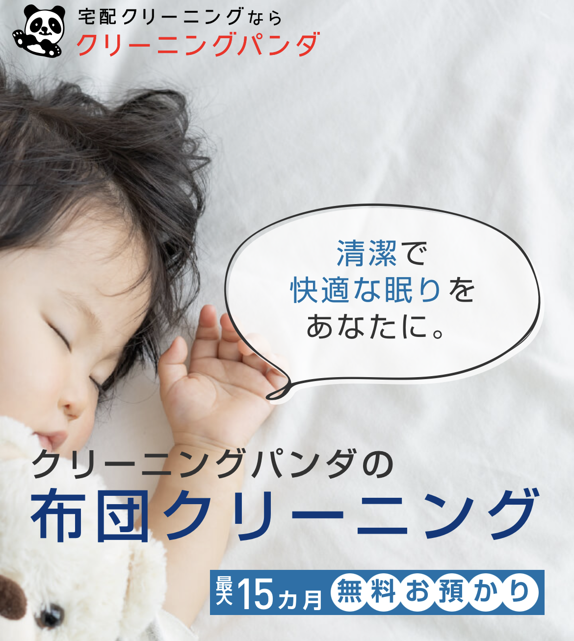 最大15ヶ月無料預かり!プロ職人の技術×思いやり品質で清潔な睡眠を「クリーニングパンダ 布団クリーニング」で