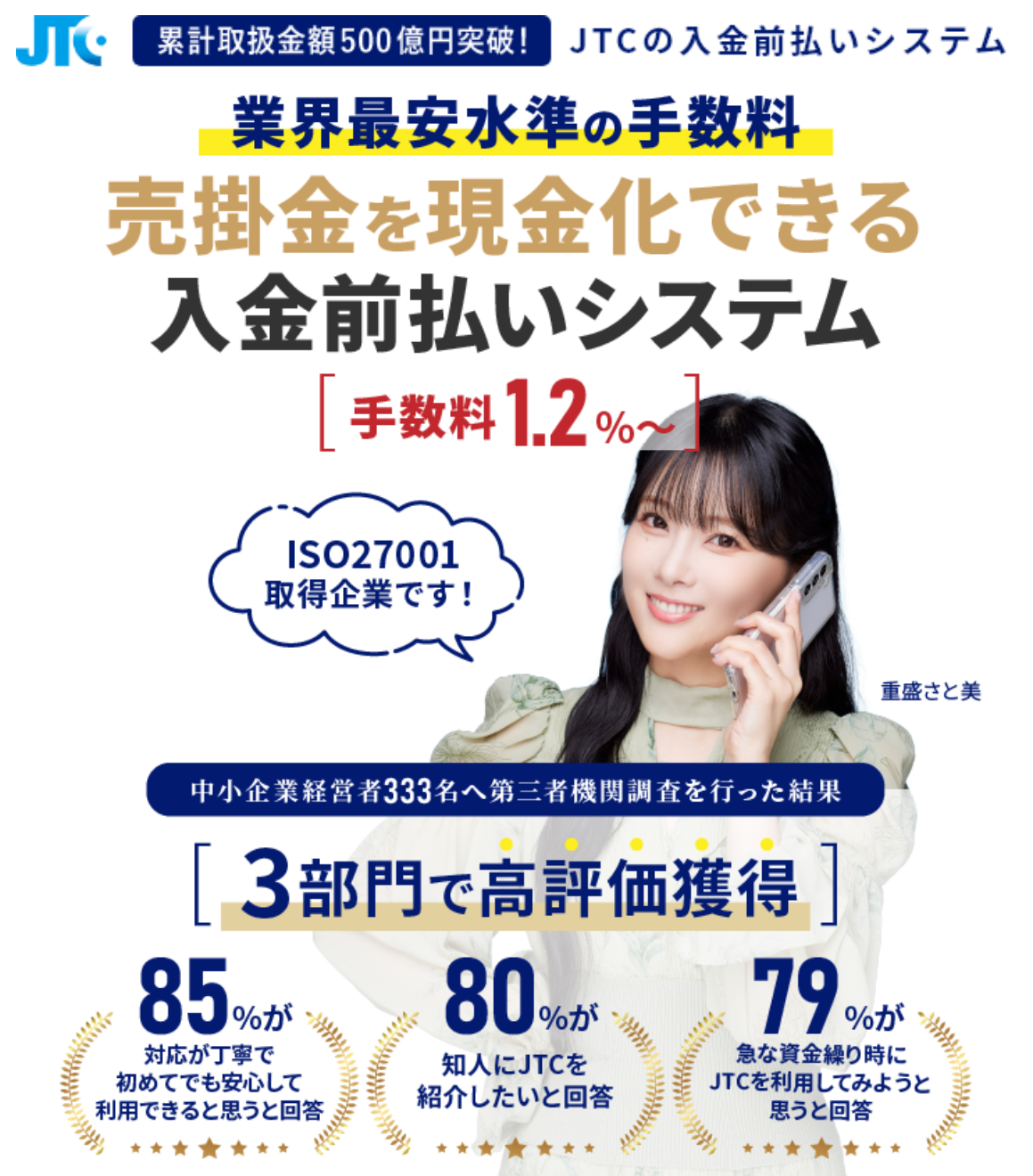 | 商品名 | JTCの入金前払いシステム【ファクタリング】 |